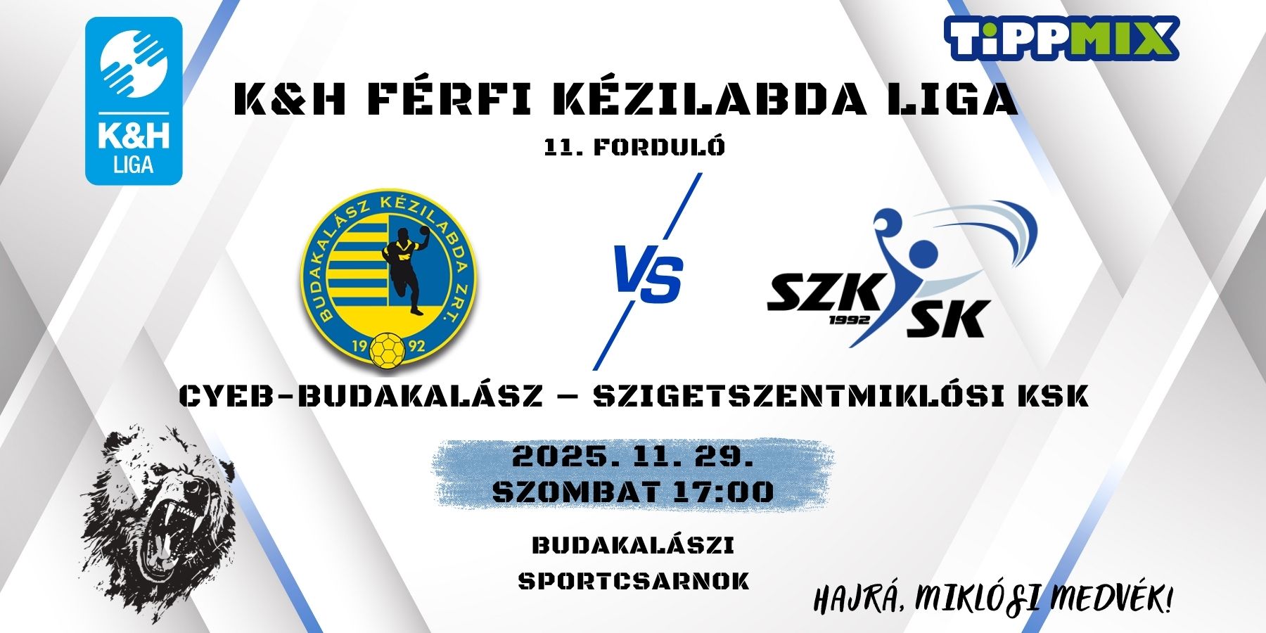 A K&H Férfi Kézilabda Liga 11. fordulójában idegenben, Budakalászon folytatja szereplését a Szigetszentmiklósi KSK. A Miklósi Medvék szombaton 17 órától a CYEB–Budakalász otthonában lépnek pályára, ahol újabb fontos pontok megszerzése lehet a cél.
