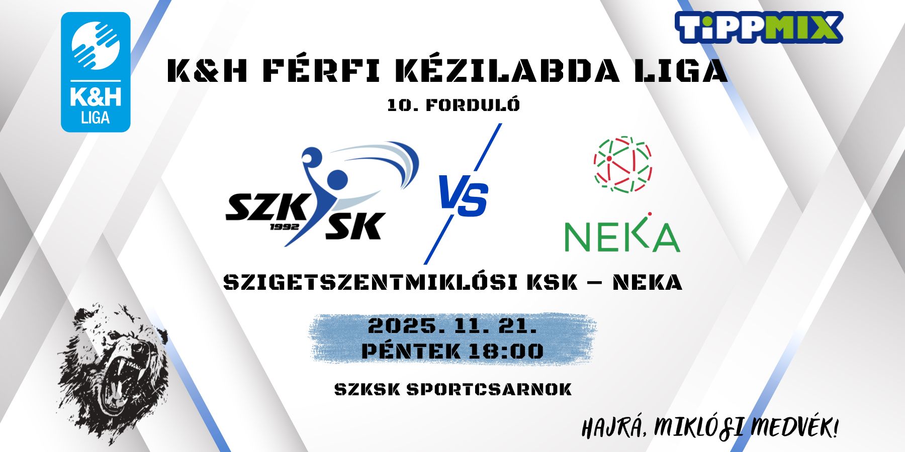 A Szigetszentmiklósi KSK a NEKA ellen lép pályára a K&H Férfi Kézilabda Liga 10. fordulójában. A Komló elleni legutóbbi hazai összecsapáshoz hasonlóan ez is úgymond „négypontos‟ mérkőzés lesz.